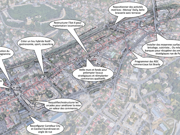 Stratégie foncière : acquisitions nécessaires, portage, remembrement éventuel, production de locaux neufs et restructurations